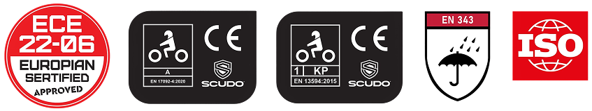 SCUDO® ürünleri; Motosiklet sürücüleri için koruyucu giysiler kategorisinde CE Onaylı EN 17092-4:2020 A Sınıfında bir kaliteye ve sertifikaya sahiptir.